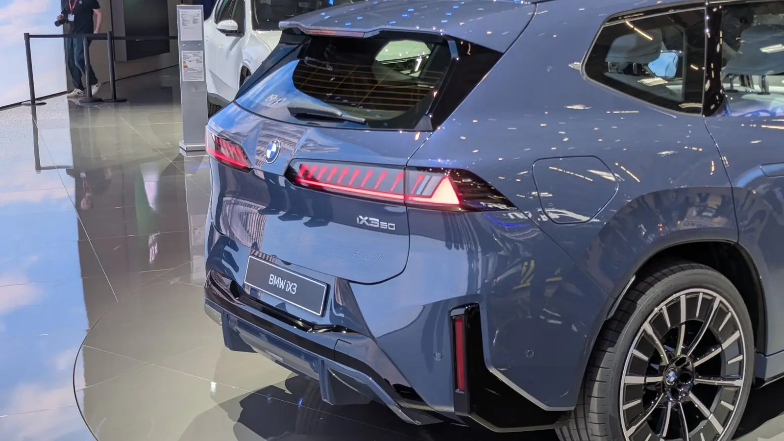 Пакет M Sport Pro добавляет чёрные глянцевые акценты на кузов, корпуса зеркал, диффузор, 22-дюймовые колёса 1054 M и красные тормоза M. Подсветка решётки радиатора затемнена, а новый плоский логотип BMW подчёркивает начало эпохи Neue Klasse.