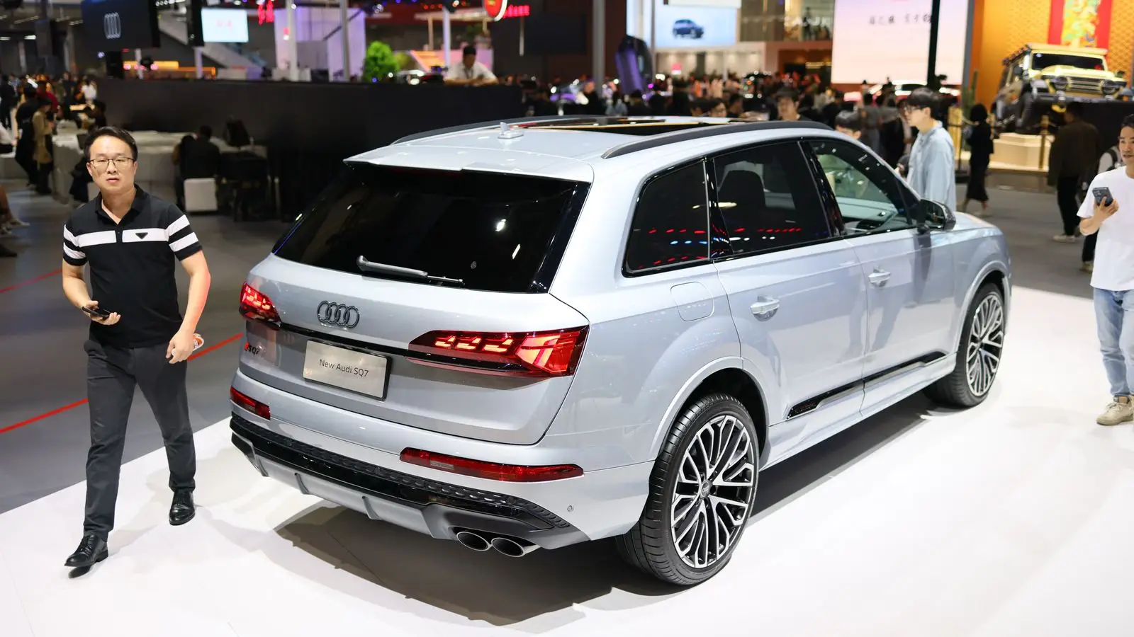 Внешне SQ8 выделяется серебристой окантовкой крупной решётки радиатора, матричными LED-фарами и декоративными элементами по периметру кузова, что подчёркивает его спортивный характер. Международные версии оснащаются 21-дюймовыми колёсами, а 22-дюймовые доступны в качестве опции, при этом в некоторых странах модель также получает карбон-керамические тормоза. Дизайнеры сделали ставку на эволюционный подход, сохранив силуэт неизменным, без радикального редизайна, что позволяет модели оставаться узнаваемой в линейке.